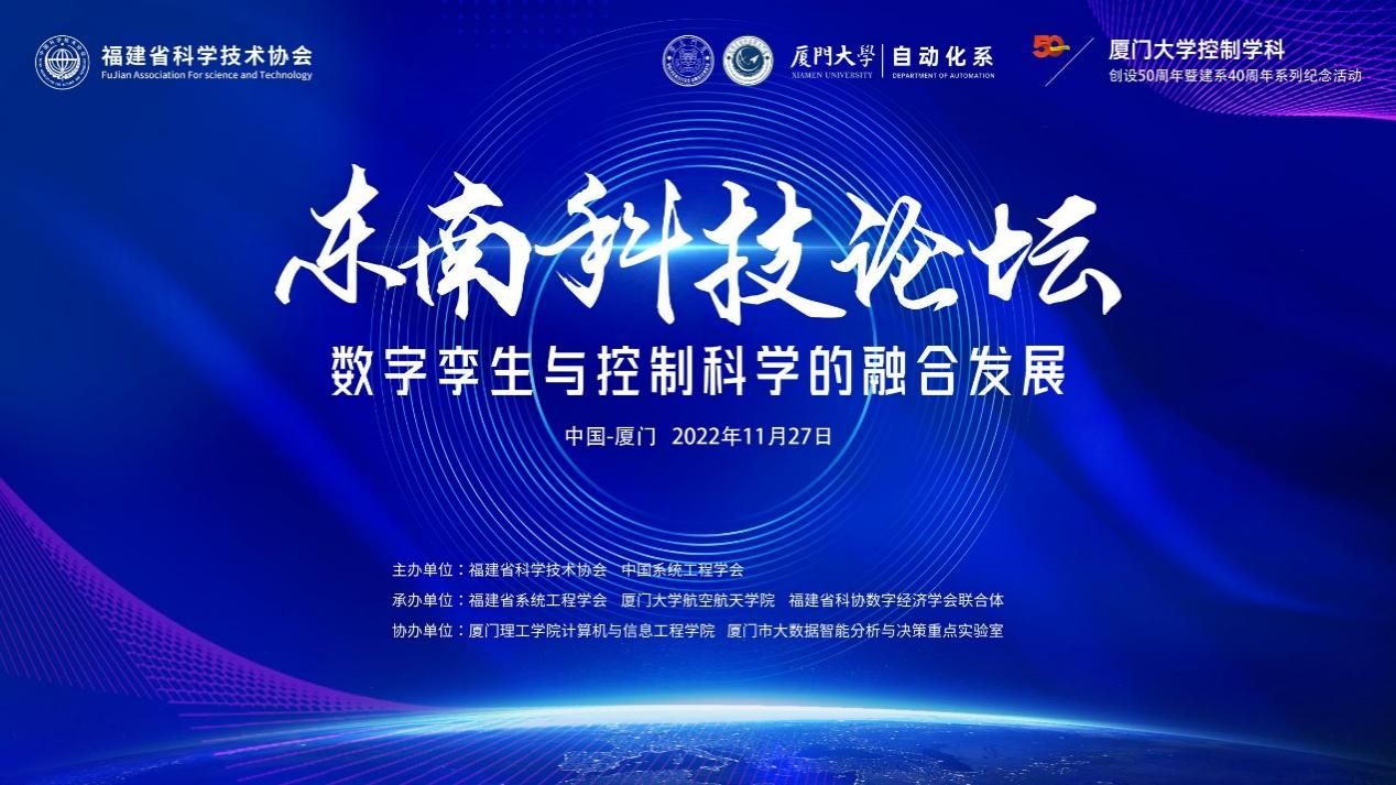 东南科技论坛是福建省科学技术协会与全国学会合作共同打造的高端学术平台,旨在邀请国内外著名专家学者来闽服务与交流,聚焦福建高质量发展全方位赶超过程中的热点、难点和前沿科技问题,科学助力各行业高质量发展。本期东南科技论坛以“数字孪生与控制科学的融合发展”为主题,邀请我国控制领域最著名的专家学者,开展数字孪生、系统论、信息论、数据科学和智能科学与各传统产业科技深度融合的高层次产学研交流与探讨。数字孪生作为智能制造领域的重要技术,旨在构建起和物理实体等价的虚拟体或数字模型,实现通过虚拟体或者数字模型对物理实体生命周期的智能设计、制造、调试和运行维护。该技术与区块链、元宇宙等前沿技术有着密切关系,服务的产业面广,有着优良的发展前景。
